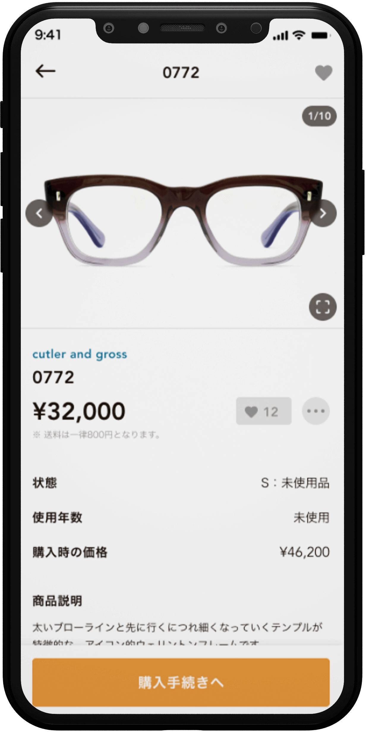 アイウェアの写真を撮って、必要なサイズ情報、出品希望金額などを入力したら完了!
